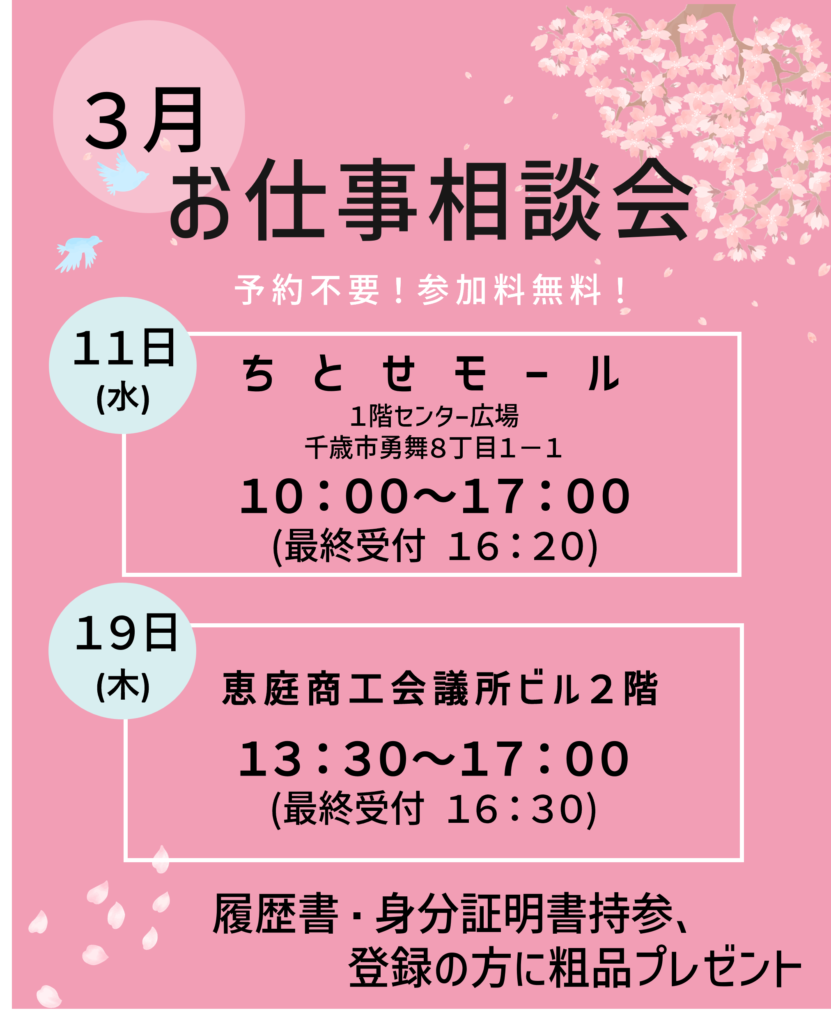 3月は千歳市のちとせモールに加え、恵庭商工会議所ビルでも開催決定いたしました🎉